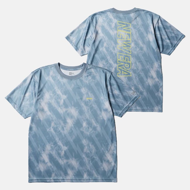 NEW ERA ニューエラ 半袖 テックTシャツ タイダイ Allover Wordmark Logo ブルーグレー | パフォーマンスアパレル 14744524