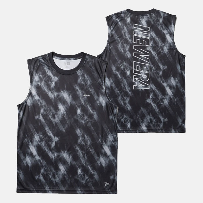 NEW ERA ニューエラ スリーブレス テックTシャツ タイダイ Allover Wordmark Logo ブラック | パフォーマンスアパレル 14744549