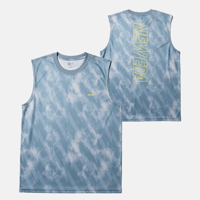 NEW ERA ニューエラ スリーブレス テックTシャツ タイダイ Allover Wordmark Logo ブルーグレー | パフォーマンスアパレル 14744550